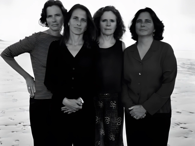 Set against what appears to be a peaceful shoreline, the sisters strike relaxed poses, suggesting a moment of calm and reflection. However, capturing a smile from each remains a rare occurrence, highlighting the authenticity of their annual portraits. This image reminds us that the beauty of the series lies not in perfection but in its honesty, offering a genuine glimpse into their lives and relationships.