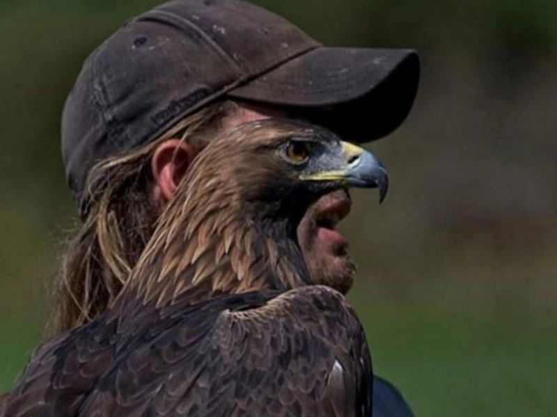 Here, a person is cleverly posed or costumed to resemble an eagle, blurring the line between human and animal in a striking and creative way. The spread of the arms, the tilt of the head, and the dramatic use of shadows all contribute to the illusion, making you do a double-take and admire the artistry behind the shot.