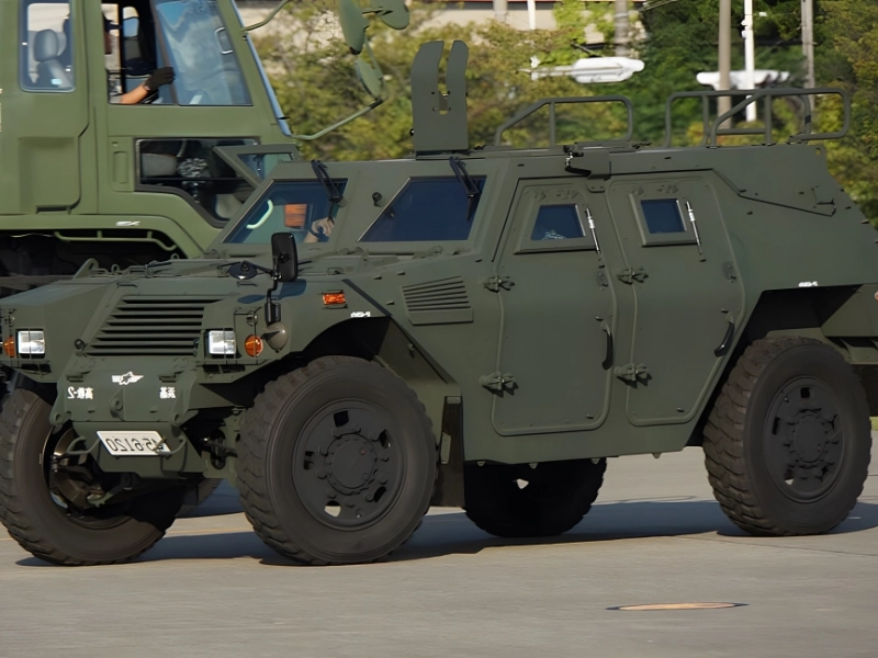 The Komatsu LAV (Light Armored Vehicle) was first produced in 2002 for the Japan Self-Defense Force. Similar to the French Panhard VBL, it features four doors and a spacious cabin for troop transport. The Komatsu LAV made its debut during humanitarian missions in Iraq, providing enhanced protection against small arms fire compared to other Japanese military vehicles.